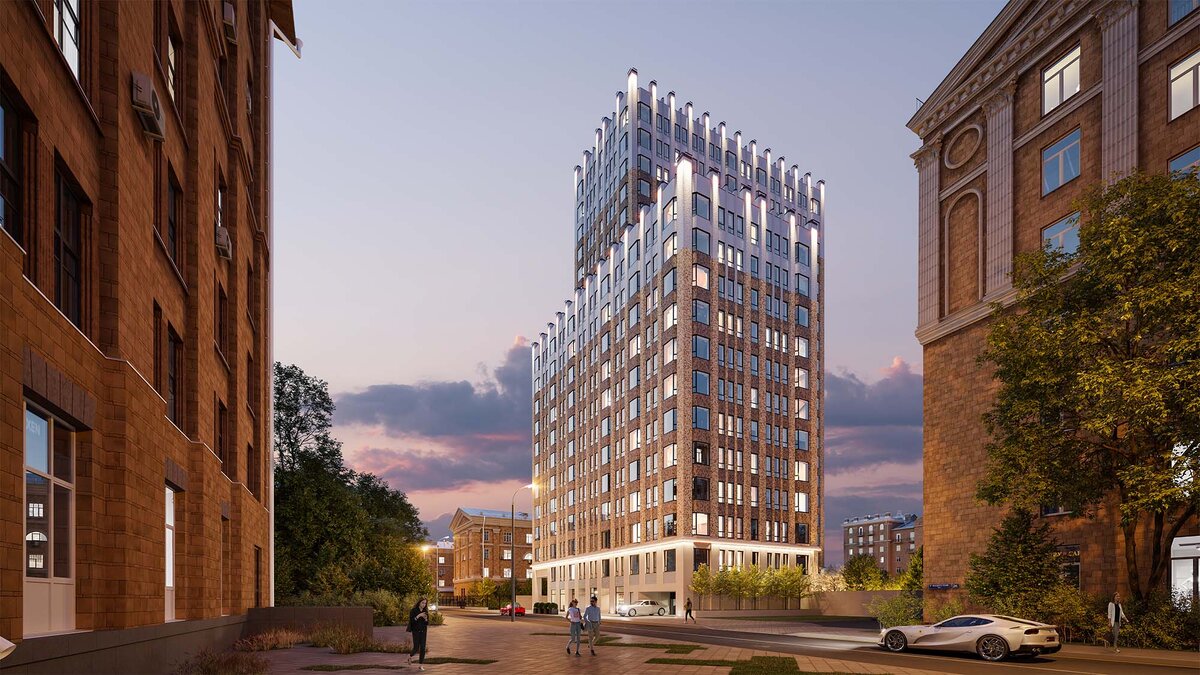 Внимание к премиальным материалам в отделке – это вообще особенность создания комплекса, его имиджа и неповторимой атмосферы. В его облицовке появится и текстурированный клинкерный кирпич песочного цвета, и глянцевый белый кирпич, отсылающие к классической московской архитектуре сталинок и партийных домов, а окна будут выполнены из алюминиевых профилей, что придаст им особенную прочность и экологичность.