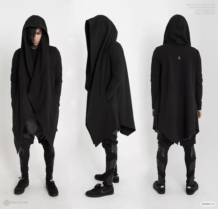 Начну я с очень модных в недавние годы мантий. Делаются они из трикотажа. Прямого покроя, с глубоким капюшоном, длиной ниже бедер. Имеют обычно два боковых прорезных кармана, эластичные манжеты и застежку-молнию, иногда асимметричную. Прекрасно подойдет для выхода из дома, если вы не хотите вылезать из одеяла.