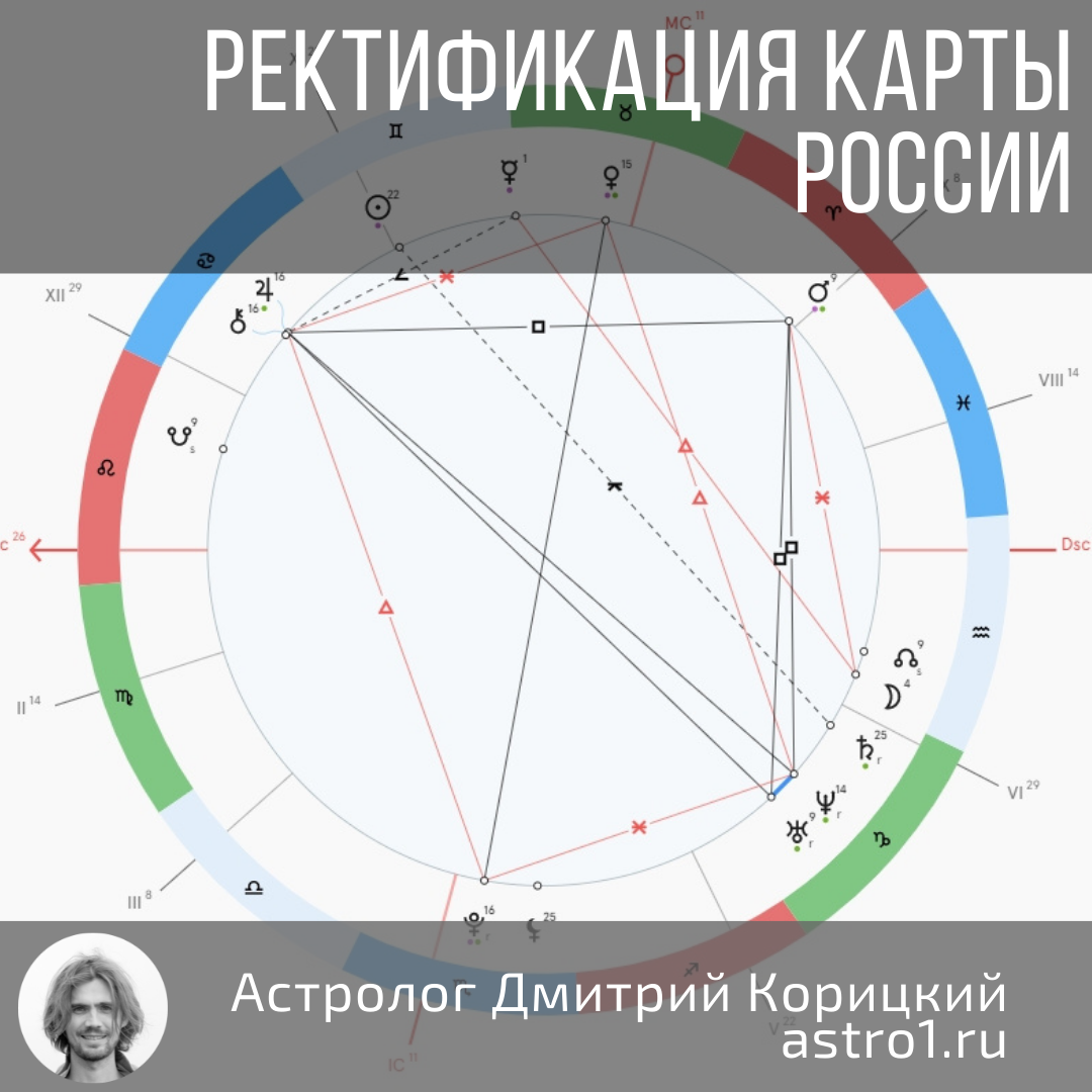 В свете последних событий, которых не ожидали большинство астрологов, в том числе и я, попробую ректифицировать карту России. А в дальнейшем сделаю прогноз на ближайшее будущее страны. Будет серия из нескольких постов, так как в один никак не уложиться. За основу взял время 12.06.1990 11:00, предложенное Ириной Сениной (время окончания голосования за независимость России). Ректификация по методу символических дирекций 1гр-1год.
