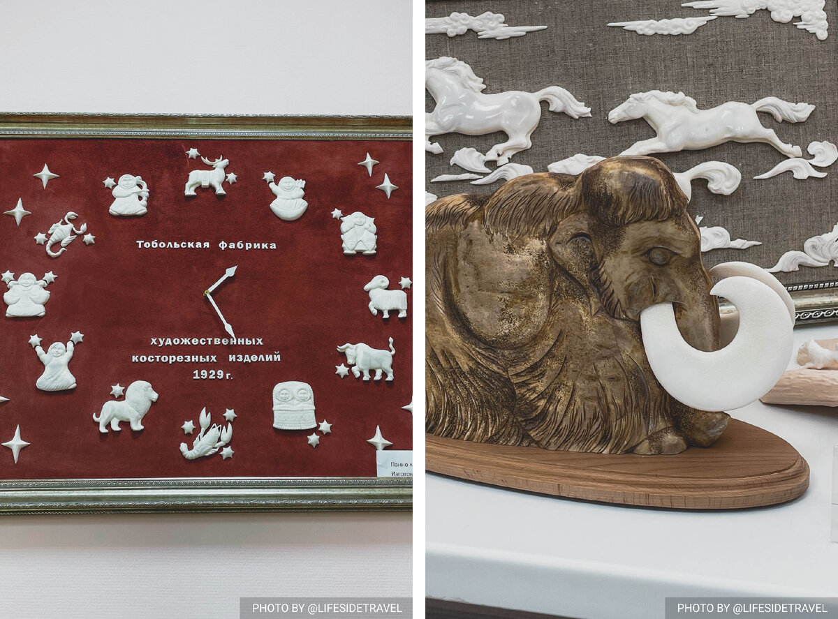 В России есть несколько коллективов, занимающихся резьбой по кости, но в рамках большого производства аналогов фабрики в Тобольске нет. По крайней мере так рассказывает местный гид. Зародилось это художественное ремесло еще в 19 веке. Тогда им занимались в основном ссыльные поляки и шведы. Мастерили поделки из бивня мамонта — широко популярного в те времена материала. Позже его заменили на цевку — кость крупного рогатого скота. Впрочем, бивень мамонта до сих пор используется в качестве основы, но стал более редким сырьем. В советские годы фабрика перешла на госзаказы, как впрочем и всё производство в стране. А вот после распада СССР фабрика чуть было не распалась, но ее спасли частные инвесторы. Казалось бы, теперь золотые руки местных мастеров прославятся на всю страну, но этого не произошло. Мало кто знает о таком необычном ремесле, а туристов в Тобольске не так чтобы много, хотя город безумно интересен и самобытен. Как рассказывают местные, они привыкли к выполнению заказов от госуд