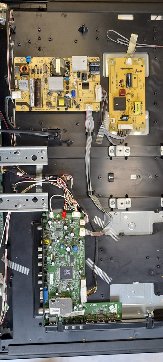 Всем здравствуйте! Сегодня у на с на ремонте телевизор Thomson T32ED33U с диагнозом не включается. По факту так и есть, при включении не светится светодиод на лицевой панели и не подаёт никаких признаков жизни. И так состав телевизора ниже. Блок питания 40-p061c2-pwe1xg Инвертор/драйвер подсветки 40-rl3210-drb1xg уменьшить ток подсветки Майн плата 40-ms82s0-mad2xg Вроде-бы по первичным признакам всё смахивает на блок питания. Но не тут-то было. С блоком питания у нас всё нормально. 3,3 и 24 вольта присутствуют. Решил проверить напряжения на стабилизаторах на майн плате. Результаты замеров на фото ниже. 1,8 вольт в наличии. 2,5 вольта имеются. Возможно немного занижено, но бывает разброс от 2,5 до 2,65. (Пока посчитаем что в пределах нормы.) Что дальше? 3,3 вольта так-же имеются. Ещё один немаловажный замер на микросхеме памяти. Так-же и 24 вольта с блока питания приходят. Практически всё согласно стандартным напряжениям. Но светодиод на панели не светится. Так-же замерил напряжение