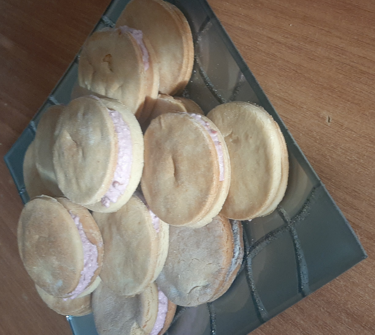 Ингредиенты: рисовой муки🥣, кукурузной муки,можно любую полезную муку,на ваше предпочтение, яйцо🥚, арахисовой пасты,можно заменить на 40г измельчённого арахиса+15 г сливочного масла, разрыхлителя, ванилин , сах.зама, молока-2,5% ж🥛, Для начинки:, творог, ягоды Способ приготовления: Яйцо взбить с сах..замом и молоком венчиком. Добавить просеянную муку, арахисовую пасту разрыхлитель, ванилин, замесить тесто. Убираем в холодильник на 30 минут. Затем раскатываем тесто, толщиной 3-5 мм, стаканом или формочкой вырезаем кружки. Кладём на противень, на силиконовый коврик. Выпекаем в духовке10-12 мин, следите, чтоб не сгорели. Для начинки взбить блендером творог и ягоды. Собираем сэндвич: печенье + крем + печенье. Ставим в холодильник на раз часов, пропитаться. Приятного аппетита!!!