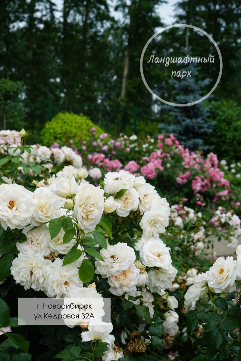 Рядом с садовым центром, в котором я работаю, есть территория заросшая сорными кленами и тополями. На которой местные жители устроили стихийную свалку. Свалку рядом видеть не хотелось, получив разрешение администрации города, клены и тополя убрали, мусор вывезли. Его оказалось больше, чем ожидали. Тот мусор, который был на поверхности, оказался лишь «верхушкой айсберга».Камазов вывезли этого «добра» больше сотни. На этом месте постепенно сделали ландшафтный парк. Высадили много роз: Девида Остина, Тантау, Кордес , Меян, Дельбаро и других питомников. Кроме этого рододендроны, гортензии, спиреи, пузыреплодники и другие кустарники. Коллекцию хвойных, которую долго собирали высадили в хвойный сад, в котором предварительно сделали геопластику. Большая наша гордость – живая изгородь из пирамидальных яблонь. Которую мы ни разу не формировали. В этом году наверное начнем. Нам высоты уже достаточно. Для Новосибирска такие яблони пока редкие жители на садовых участках. А живая изгородь