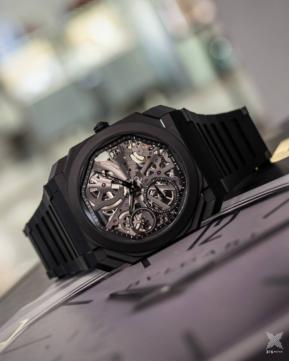 Эффектный дизайн часов Octo Finissimo Skeleton, выполненных из черной керамики, не оставит равнодушным даже самого капризного эстета.