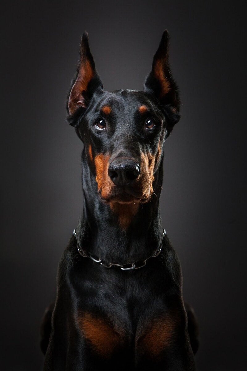 Точных сведений о происхождении доберманов не имеется, так как создатель породы Ф. Л. Доберманн не вел записей. Предположительно, порода была создана с применением короткошёрстных овчарок, ротвейлера, чёрно-подпалого терьера и гладкошёрстного немецкого пинчера. Доберманн не успел довести селекционную работу до конца, и после его смерти работу с породой продолжил Отто Геллер, которого по праву считают «отцом доберманов». Первоначальное название породы — тюрингский пинчер — после смерти Доберманна в 1894 году было заменено на доберман-пинчер. Во время очередной редакции стандарта в 1949 году из названия породы было убрано слово «пинчер», и она стала называться просто «доберман». Во время второй мировой войны доберманы несли службу в морской пехоте США. За заслуги перед армией им было присвоено звание «Semper Fidelis» («Всегда верный»). Их также называли «собаки дьявола». Быстрота реакции, неуязвимость, бесстрашие делали этих собак непревзойденными пpи выполнении спецзаданий на войне.