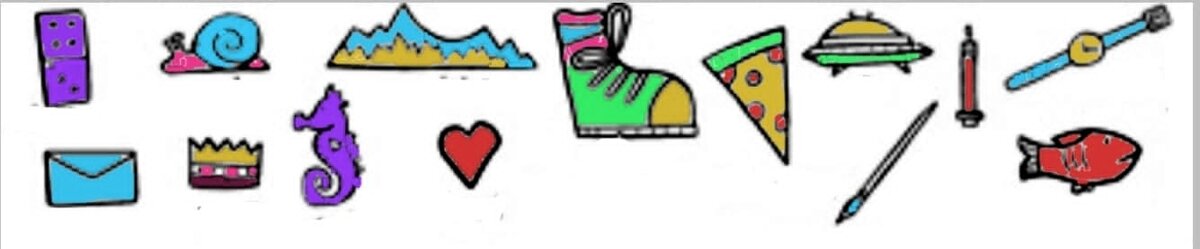 Тест на наблюдательность; найти на картинке рыбку, конверт, ботинок и кусочек пиццы