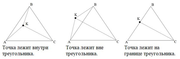 Продолжу делиться задачами на ветвление. Тема ветвления актуальна в любом виде программирования. Основная задача "ветвящегося" алгоритма - это выбор одного из решения. Как правило выбор может происходить по условию. Но для начал предлагаю вспомнить предыдущие задачи. А теперь непосредственно к новому заданию: Задача 10: Даны три пары действительных чисел: (x1,y1),(x2,y2),(x3,y3). Это даны координаты трёх точек, образующих треугольник. Задание 1: Определить лежит начало координат (0,0) внутри треугольника или нет. Задание 2: Даётся точка с координатами (a,b),определить. лежит ли она внутри треугольника? А теперь переходим к решению. Как вы понимаете, вся сложность состоит в том, чтобы найти условие по которому мы поймем, выполняется условие оно нет. Ещё один интересный факт, В данном случае, прежде чем переходить к программированию, необходимо вспомнить геометрию. задача действительно интересная. Сегодня я не буду публиковать ответа, сделаю это чуть позднее. Попробуйте самостоятельно р