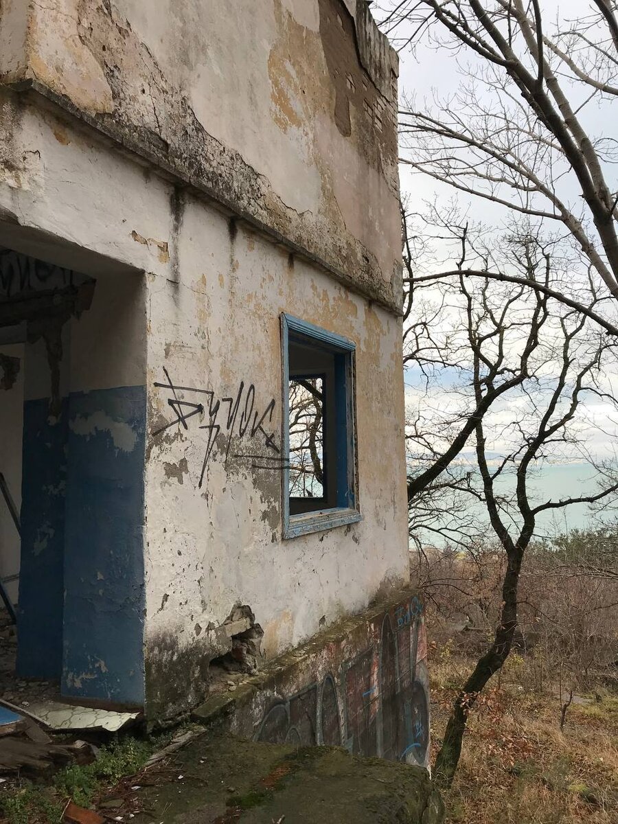 Ехали мы, значит, по улице Мира в Кабардинке под Геленджиком в сторону выброшенного на берег сухогруза RIO (о котором я рассказала вот здесь), и нам на глаза совершенно случайно попался заброшенный пансионат. В тот же момент было решено изведать его территорию. Мы резко свернули в его сторону, сменив маршрут. Оказалось, это заброшенный пансионат «Восток». Сразу отмечу – въезд в санаторий никак не огорожен: нет ворот или других преград, в отличие от других подобных объектов на Черноморском побережье, причем в каком бы они состоянии не находились. «Восток» не охраняется, нет камер. Мы заехали на машине, через заборы не лазили. Когда мы оказались на территории, мы поняли, что она просто огромна. «Такой лакомый кусочек с шикарным видом на Новороссийскую бухту и близостью к морю пропадает», - одновременно завертелась в наших головах мысль. Там остались только сами здания - 3 трехэтажных корпуса, несколько одноэтажных и куча мелких кирпичных построек. В них полный разгром: то тут, то там оск