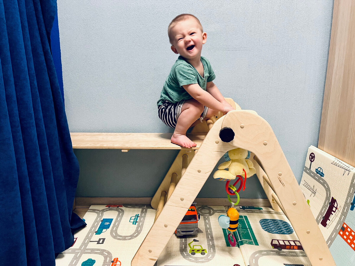 У нас растёт активный сын, который стремится залезть на все шкафы и столы, поэтому в возрасте около 1 года мы решили купить для него треугольник Пиклер. В нашем варианте треугольник + горка. Спустя 5 месяцев его использования готова дать отзыв! Этот тренажёр изобрела венгерский педиатр Эмми Пиклер. Он подходит для использования самыми маленькими детьми, которые только научились стоять у опоры. Основные преимущества для меня: Сын с огромным удовольствием взбирается вверх и вниз по лестнице! Горки он в принципе ещё не оценил, поэтому пока доска у нас выполняет роль мостика между треугольником и кроватью. За эти 5 месяцев мы пробовали разные варианты расположения и каждый раз перестановка обновляла интерес сына к этому устройству. Он использует его каждый день. Подробнее расскажу о вариантах использования: 1️⃣ По прямому назначению: по лестнице лазать, с горки - кататься 😁 2️⃣ Использовать как домик 🏠 3️⃣ Катать с горки машинки 4️⃣ Использовать как стеллаж для книг в собранном ви