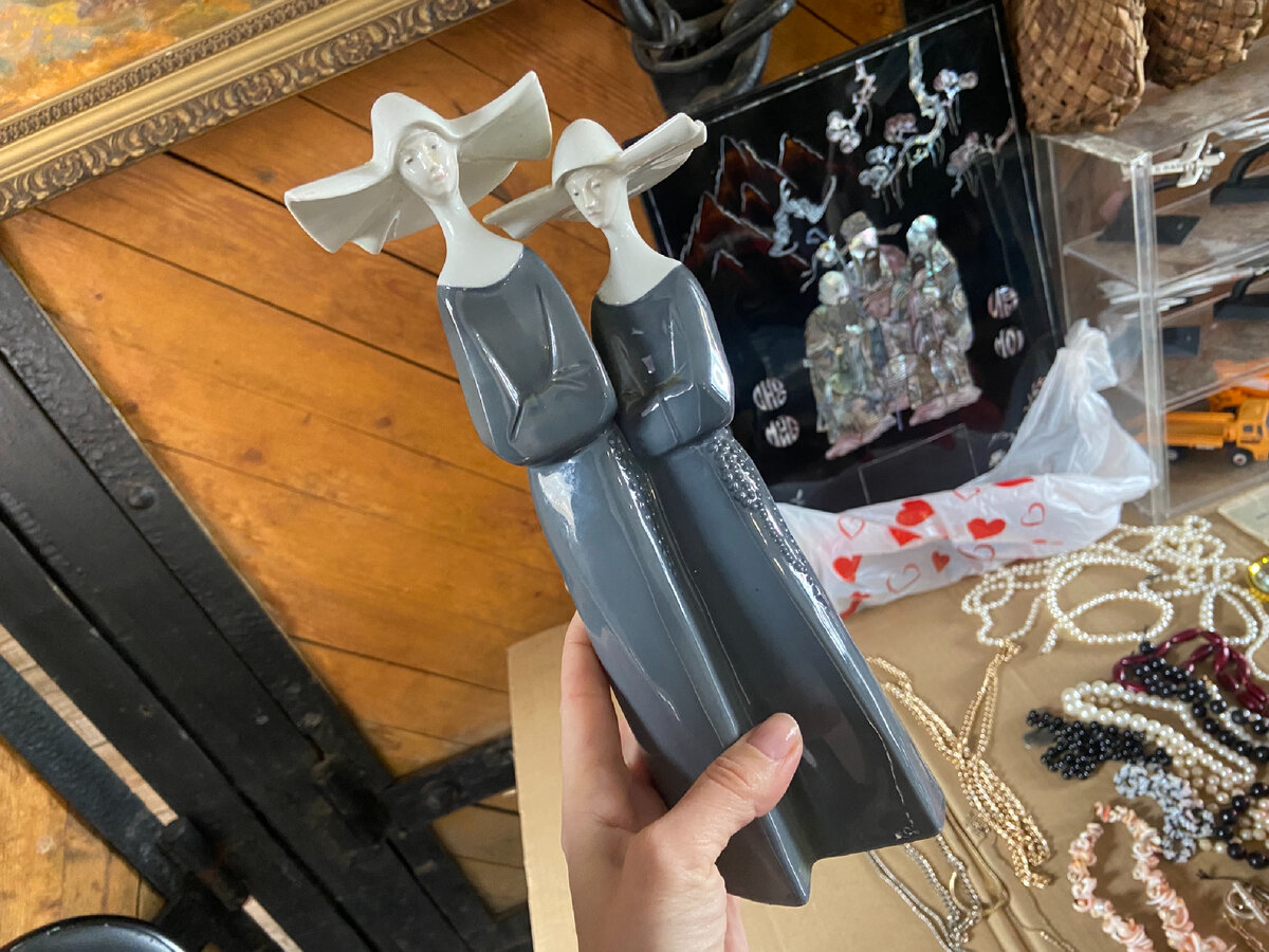 В эти выходные ездили всей семьей на блошинку. К моему удивлению, мужу там очень понравилось! #винтаж #блошиный рынок Первая фигурка двух католических монахинь почему-то запала мне в душу с самого начала, стоила она 3000- Мне нравится атмосфера в таких местах! В общем, кризис кризисом, а на блошинке всегда шумно и весело! Всех благодарю за внимание!!! Предыдущий мой поход на рынок тут #винтаж_амбассадор