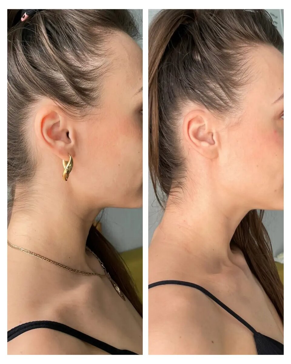 Всем привет! Сегодня я ,наконец-то, готова показать вам результат нашей совместной работы с Викой. Итак, сейчас расскажу подробно с чем и как мы работали. Особое внимание мы уделяли шеи. А именно мыщце платизме и грудино-ключично-сосцевидной мыщце , из-за тренировок с большим весом эти мышцы были в сильном напряжение. Мы расслабляли эти мышцы и, конечно ,не оставляли без внимания заднюю поверхность шеи . Итог нашей работы отлично виден на фото: шея стала длинее, кольца Венеры ( поперечные морщины на шеи) стали менее заметны, угол молости более выражен . Дальше мы работали буккальной техникой ( через слизистую ) , чтобы расслабить жевательные и шечные мыщцы, поднять скулы , убрать носогубный залом, придать мышцам норматонус. Помните мой вчерашний пост про жевательную мышцу ? Рекомендую ознакомиться, если вы его пропустили. Листайте ⬇️и смотрите как изменилась щечная область. У Вики там не хватало объёма из-за спазма жевательной и щечной мышц . Это, как раз ,то о чем я вам говорила