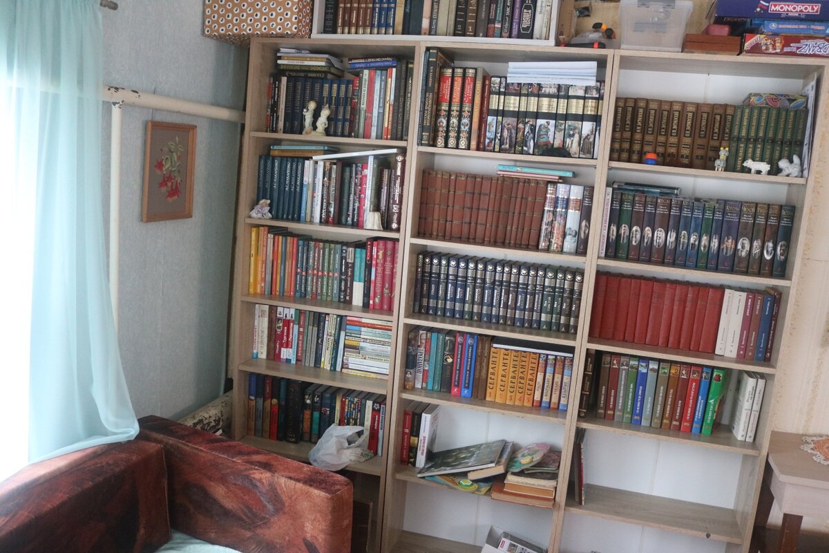 Ещё у меня есть неразобранная библиотека из книг, которые мне отдают, и я не знаю куда их оформить в основную. Пока для них отвёл полки в шкафу.