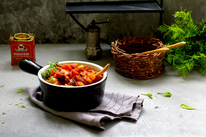 Очень вкусное овощное сезонное блюдо. В Болгарии под этим названием подразумевают соус или суп из овощей со специями (иногда добавляют мясо или грибы). В Молдове, Бессарабии и на юге Украины манджу готовят по-другому: это овощное рагу из баклажанов, лука, сладкого перца и помидоров, пряное и острое, очень ароматное. Здесь ее подают как закуску и закатывают на зиму в банки. Подходящая посуда для готовки - кастрюля с толстым дном типа казана. При отсутствии можно готовить в мультиварке или медленноварке. ✓Баклажаны – 400 г