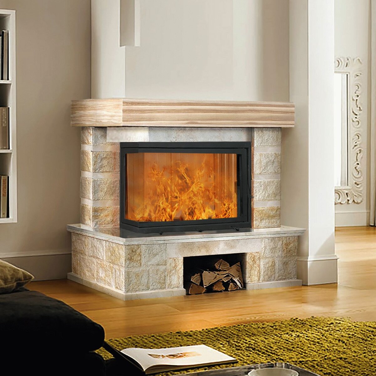Камин с топкой «фронт-угол» - удачное интерьерное решение