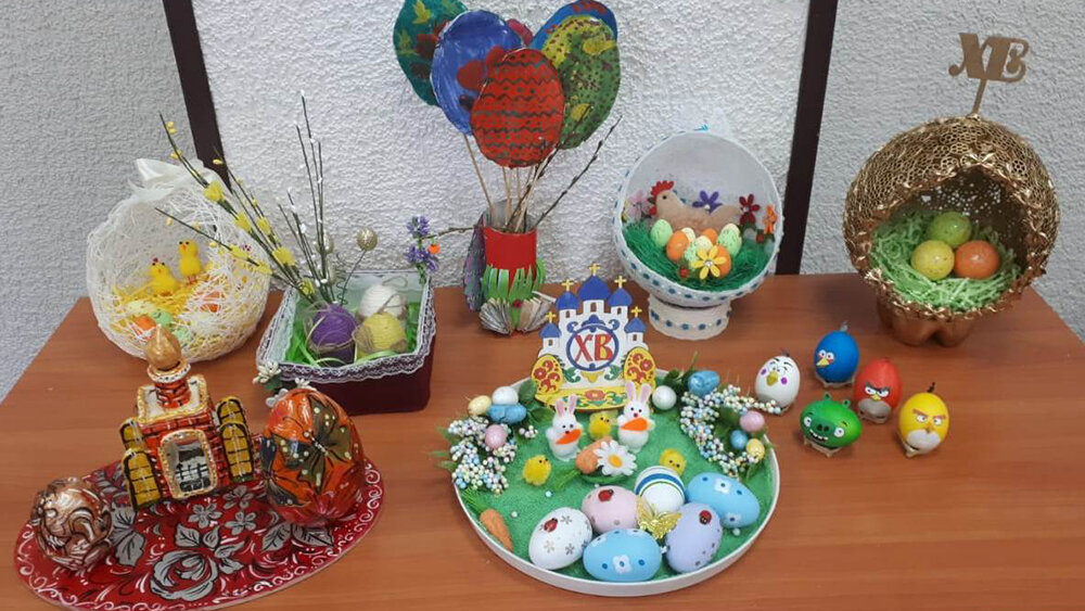 Конкурс творческих работ проводили, чтобы создать благоприятную эмоциональную атмосферу в преддверии Пасхи. Участвовали 12 детей сотрудников ФКУ УИИ разных возрастов. Дети мастерили поделки, посвященные празднику.