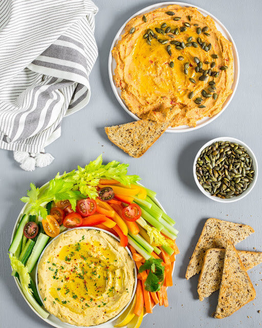 Хумус - одно из моих лучших открытий этого года. Раньше я их пробовала, но сама не готовила. Один несчастный пакетик нута стоял в моей кладовке пару лет и дожидался своей очереди)) А после поездки в Израиль я таки загорелась идеей сделать свой идеальный хумус. Все получилось даже лучше моих ожиданий! 🔥 Идет отлично и с хлебцами, и с овощами, и с хлебом и просто так)) Прекрасная закуска, дополнение к приему пищи или даже гарнир. И что важно, готовится очень просто, а количество и пропорции ингредиентов вы можете подбирать по вкусу. Для классического хумуса понадобятся: 700 г вареного или консервированного нута 2 ст. л. тахини 4 ст. л. оливкового масла 2 ст. л. лимонного сока 3 зубчика чеснока (выдавить с помощью чеснокодавки) 120-150 мл жидкости, в которой варился нут (или из банки) ½ ч. л. молотого кориандра ¼ ч. л. черного свежемолотого перца ½ ч. л. мелкой соли ¼ ч. л. молотого чили (по желанию) Для томатного (для добавления к классическому варианту): 20 вяленых томатов (я брала то