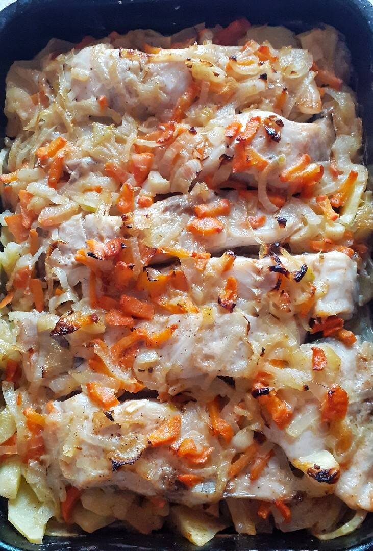 #академия #пост #восточнаякухня. Сегодня у меня на обед нежнейший карп с восточными нотками, так как замаринован в постном соусе из соевого молока с бальзамическим уксусом и соевым соусом. Ингредиенты: крупный карп, картофеля, большие луковицы, морковь, Для соуса:, соевого молока, бальзамического уксуса, соевого соуса, горчицы, растительного масла, соль, перец чёрный молотый, специи для рыбы, растительного масла для жарки лука и моркови Способ приготовления: У меня карп уже был почищен, разрезан на кусочки и хранился в морозилке. Я его заранее разморозила и посолила. Ночь он у меня простоял в холодильнике.Если готовить из свежего карпа, то достаточно почистить, разрезать на кусочки и посолить. Выдержать минимум час. Затем кусочки рыбы переложить в сухую тару и готовить дальше по рецепту. Приготовить соус. В стакан для взбивания блендером влить соевое молоко, добавить уксус, вместо бальзамического можно взять любой другой, уменьшив пропорцию. А также горчицу и соевый соус. Взбить бленде