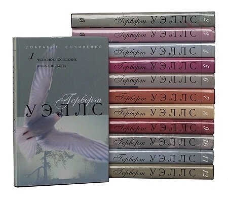 Состав. Том 1. Чудесное посещение. Душа епископа. Том 2. Машина времени. Рассказ о каменном веке. Мистер Блетсуорси на острове Рэмпол. Том 3. Остров доктора Моро. Пища богов. Игрок в крокет. Том 4. Человек-невидимка. В ожидании. Том 5. Война миров. В дни кометы. Том 6. Первые люди на Луне. Великие искания. Том 7. Когда проснется спящий. Под властью любви. Том 8. Армагеддон. Грядущие дни. Новый Макиавелли. Том 9. Тоно Бенге. Том 10. Джоанна и Питер. Школа жизни. Том 11. Школа жизни (окончание). Морская дева. Рассказы. Том 12. Тайники сердца. Неугасимый огонь. Рассказы. Книги можно заказать здесь https://bukinistkniga.ru/products/uells-gerbert-sobranie-sochinenij-v-12-tomah