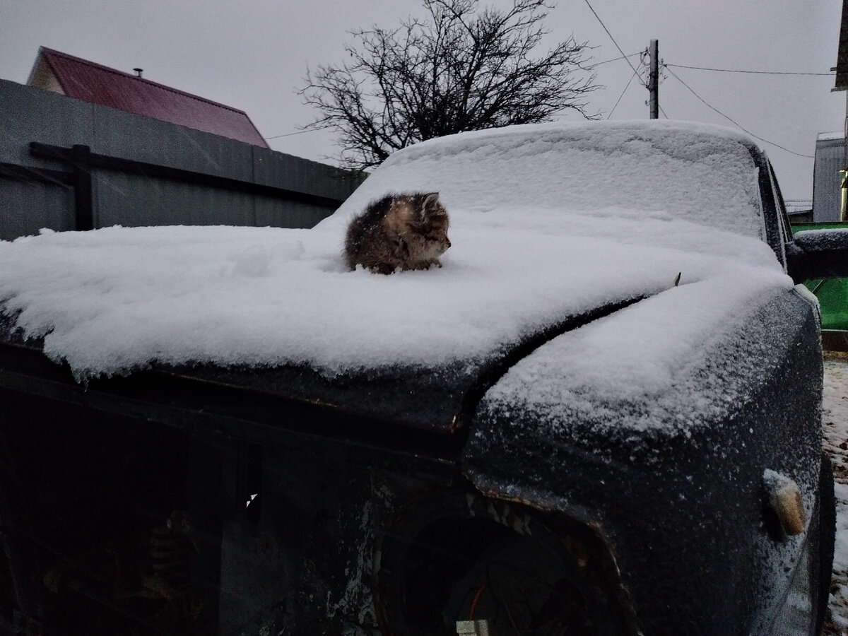 А что же котики? Также жили в черной "Волге" на улице, несмотря на морозы. Подозрительный котик совершенно не показывал никакой активности, даже заносил его в гараж чтобы согреть.