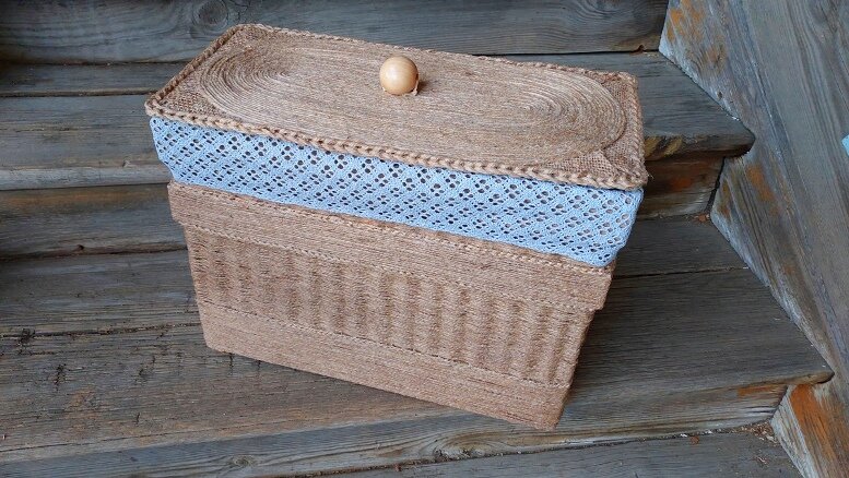 Из джутового шпагата получился отличный плетеный короб для хранения. Видео-мастер-класс.