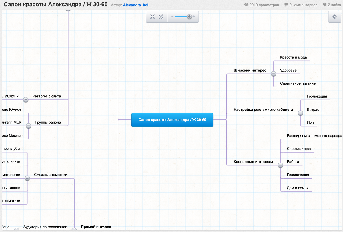 Всем привет, сегодня расскажу, на что обратить внимание и как получить максимальный результат у клиента, если бюджет на таргет сравнительно небольшой. 1. Анализ Первое и самое важное - это хороший анализ. Так как бюджет маленький, право на ошибку существенно сокращается. Именно поэтому стоит уделить особое внимание: Соберите список групп ваших конкурентов в TargetHunter и посмотрите, какие креативы используют они (как это сделать описано в этой статье ) Сделайте майд-карту на сайте https://mind42.com/ или https://www.xmind.net с подробным описанием ца (целевой аудитории), созвонитесь с клиентом, на этот моменте он тоже может подсказать много моментов. Также изучите чужие майнд-карты: в поиске вводите свою нишу и ищите разбивки ца. Это здорово сэкономит вам время и поможет увидеть сегменты, о которых вы могли даже не подумать. Одно золотое правило: при сегментировании ца не забудьте ответить на вопрос "кто ТОЧНО не купит и не перейдет?" и добавить отдельный сегмент с исключениями для