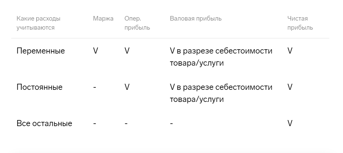 Этот вид прибыли формируется из выручки за минусом переменных расходов. Переменные расходы — это сырье, расходные материалы, зарплата и другие расходы, которые возникают время от времени. А выручка — это деньги, которые компания получила от клиентов, оплативших товары и услуги.