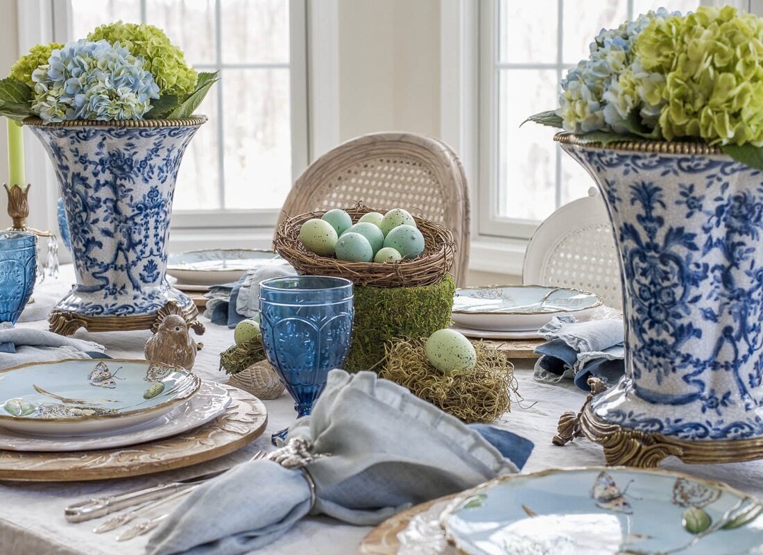 Многие хозяйки начинают подготовку к этому празднику заранее. В этом нет ничего удивительного, ведь сейчас существует огромное множество вариантов пасхального декора: начиная от привычных нам расписанных яиц и заканчивая замысловатыми праздничными композициями. Причем, все это великолепие можно, как приобрести в интернете или ближайшем супермаркете, так и, при желании, сделать самостоятельно. Начнем мы, пожалуй с традиционного для этого праздника декора - расписанных яиц. Традиция красить яйца - одна из древнейших и версий ее появления несколько. Некоторые из них касаются религиозных событий, другие обусловлены с исторической точки зрения. В любом случае - это один из самых простых, но эффектных способов украсить свой дом к празднику. Для того, чтобы добавить немного "современной" нотки, те же крашенные яйца можно сложить в прозрачную вазу или блюдо. Такой вариант отлично подойдет для минималистичных или скандинавских интерьеров. Чуть более сложными в исполнении, но невероятно эффект