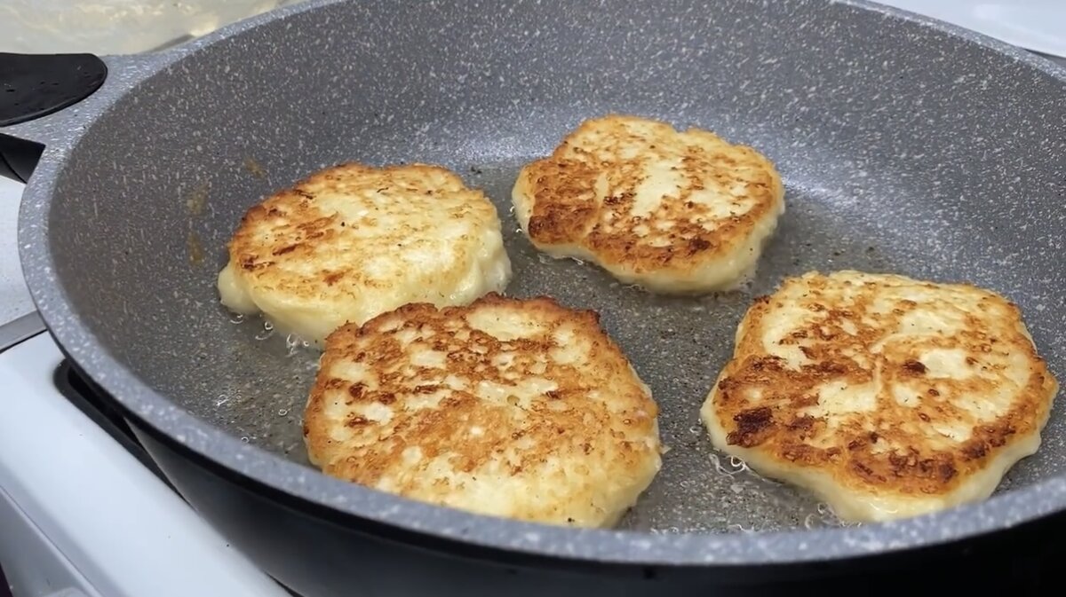 В сковороде разогреваем растительное масло,зачерпываем тесто столовой ложкой (не перемешивая).