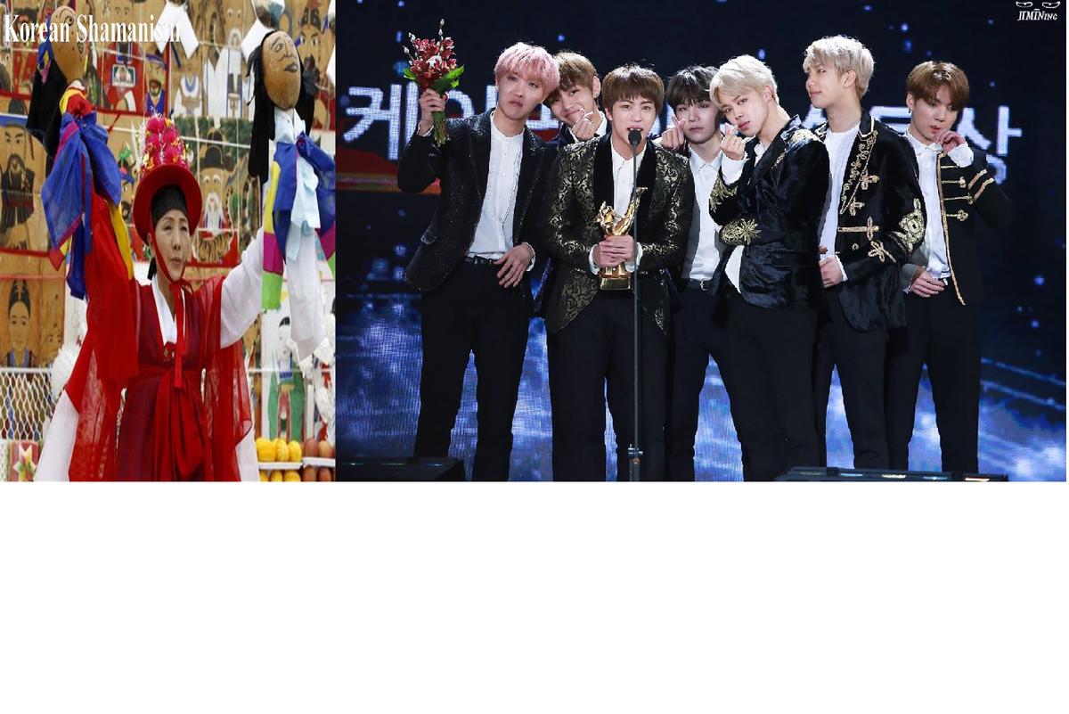 Первой корейской религией, которая сохранилась до сих пор является мусок или шаманизм. Эта религия зародилась ещё в эпоху Пуё когда люди занимались охотой и собирательством. Главным объектом является бог неба Сандже. Вся же земля наполнена духами, которые оказывают влияние на жизнь людей. Для общения с ними существуют женщины шаманы-мудан. Шаманизм сегодня сохранился в Южной Корее и используется в основном для гадания.
