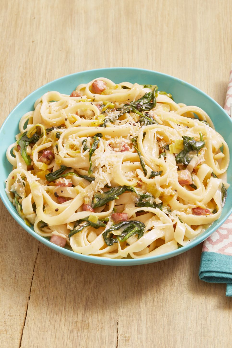 Лук-порей придает пасте великолепный луковый вкус. Только не забудьте промыть его после нарезки, чтобы избавиться от зернистости. БЛЮДА: 6 порций ВРЕМЯ ПОДГОТОВКИ: 0 часов 30 минут ОБЩЕЕ ВРЕМЯ: 0 часов 30 минут Ингредиенты Способ приготовления