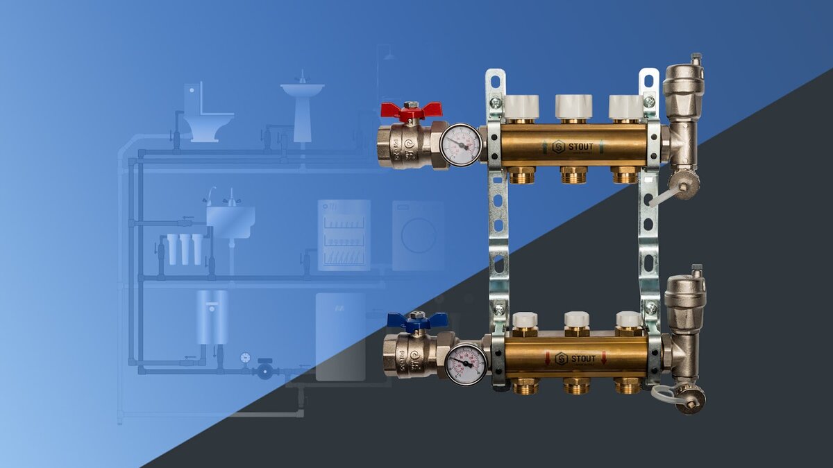 Коллектор (или гребенка) — арматура, которая обеспечивает распределение воды к потребителям. Нужен ли он в системе водоснабжения и зачем? Обсудим с экспертами STOUT! Зачем нужно устанавливать коллекторы для водоснабжения Существует два варианта распределения потоков воды к потребителям: схема с коллектором или тройниковая схема. Рассмотрим их детально, чтобы понять преимущества и недостатки каждой. Схема с коллектором Это так называемая система с параллельным подключением потребителей. Коллектор представляет собой цилиндр с отверстиями по сторонам и на торцах. Устанавливается на входе водной магистрали и делит водный поток на несколько потоков с равной мощностью. Так, параллельными потоками вода поступает к разным сантехническим потребителям (кранам, стиральной или посудомоечной машинам, сливному бачку и другим устройствам). Для регулировки напора потока устанавливаются перекрывающие устройства. На торцевой вход устанавливается заглушка или подключается второй коллектор, если число вы