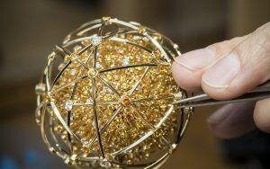 Необыкновенные объекты™ Van Cleef & Arpels занимает видное место в редкой и малоизвестной области: драгоценные предметы и автоматы. Новые уникальные творения сочетают эстетическую изысканность с благородными материалами и механическим механизмом, посвященным волшебству момента. Эти автоматы отображают время, приглашая помечтать. Планетарий-автомат Автомат Планетария демонстрирует Солнце и некоторые планеты Солнечной системы. Каждое небесное тело движется в соответствии со своей реальной скоростью вращения, а Луна вращается вокруг Земли в небесном балете. Особое внимание Дом уделил выбору материалов, сочетая в себе большое разнообразие драгоценных и поделочных камней. Отличные поделки и ощущение погружения в космос пробуждают неповторимые эмоции. Fontaine aux Oiseaux automaton Автомат Fontaine aux Oiseaux с анимацией по запросу и ретроградной индикацией часов демонстрирует трогательную сцену. Две птицы просыпаются и начинают ухаживание: они поют, двигаясь навстречу друг другу, а кувши