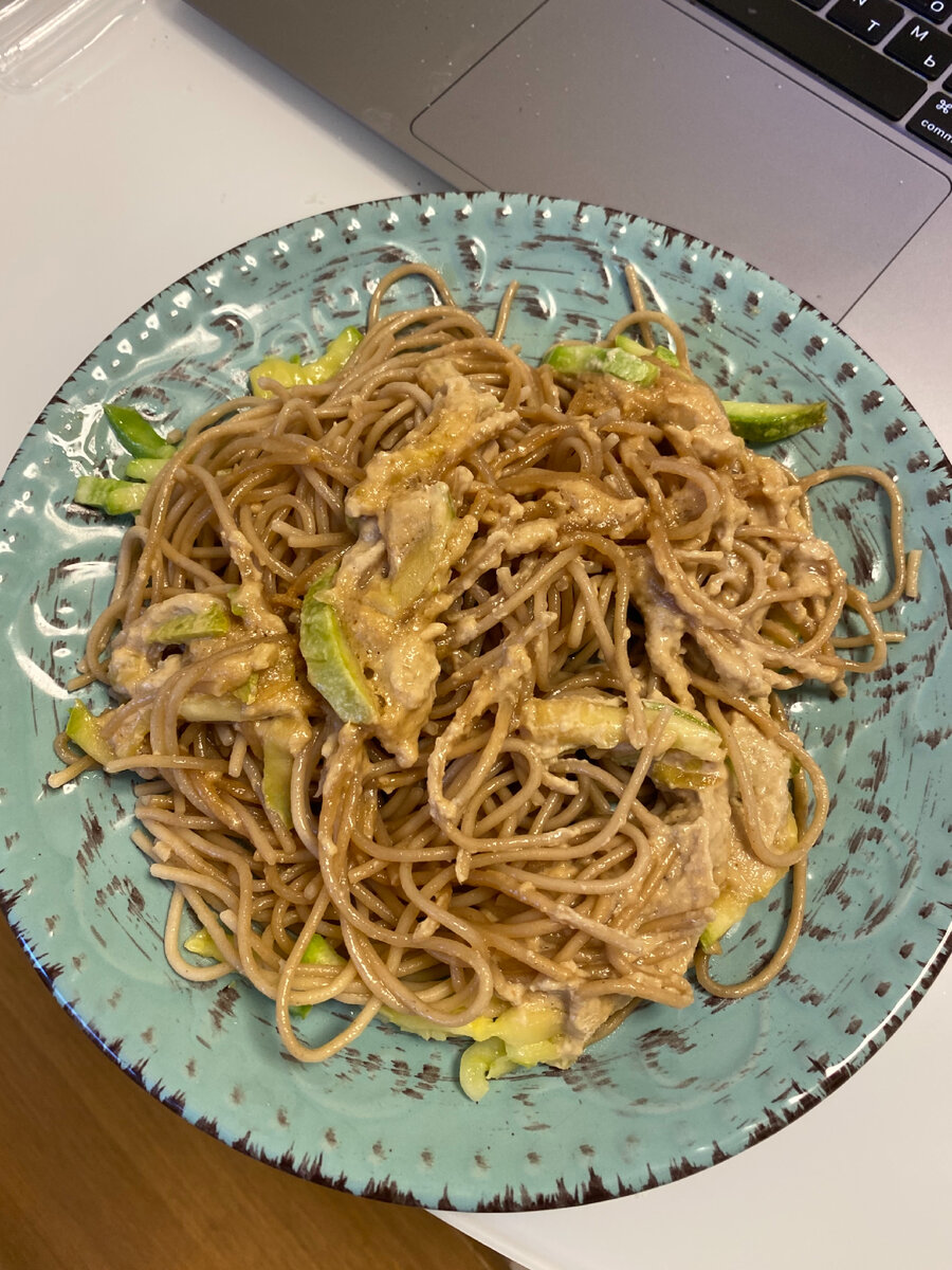Постное ПП блюдо - гречневая лапша с кабачками и ореховым соусом