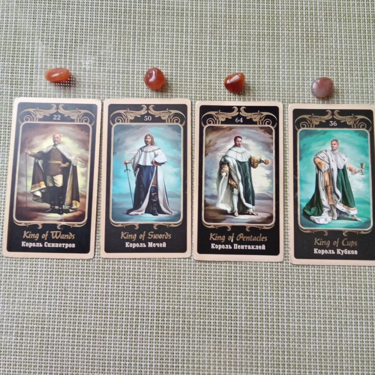 В колоде Таро четыре Короля: Король скипетров, Король кубков, Король мечей и Король пентаклей.