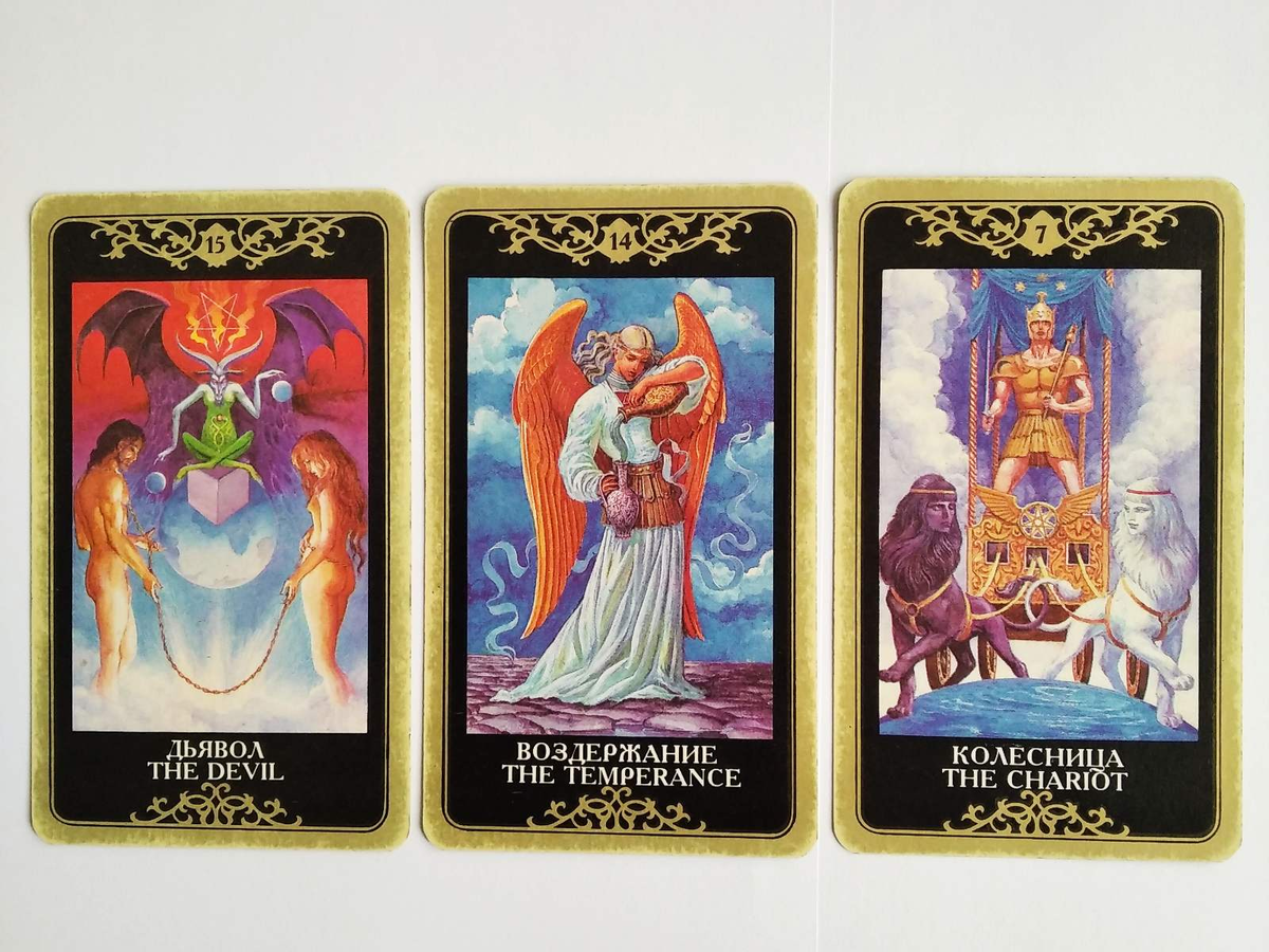 Что было ? Что будет ? Чем сердце успокоится ? Сегодня мы рассмотрим расклад Таро на отношения. Гадание для мужчины и женщины. Семья стоит на грани распада по разным причинам. Чтобы сохранить семью, простили друг друга и решили дать себе последний шанс. Аркан Воздержание ( Умеренность ) символизирует стабилизацию в отношениях. Семья может укрепить отношения, если мужчина и женщина смогут избавиться от своих вредных привычек. Аркан Дьявол указывает на порочный образ жизни. Мужчина и женщина в недалёком прошлом в период ссор позволяли себе иметь случайные сексуальные связи на стороне. И у обоих была алкогольная зависимость. Аркан Колесница говорит о том , что семью ожидают более крепкие отношения. Мужчина и женщина станут лучше понимать друг друга и будут больше и интереснее проводить время вместе, наслаждаясь общением. У них появится второе дыхание для счастливой семейной жизни ! Они вновь полюбят