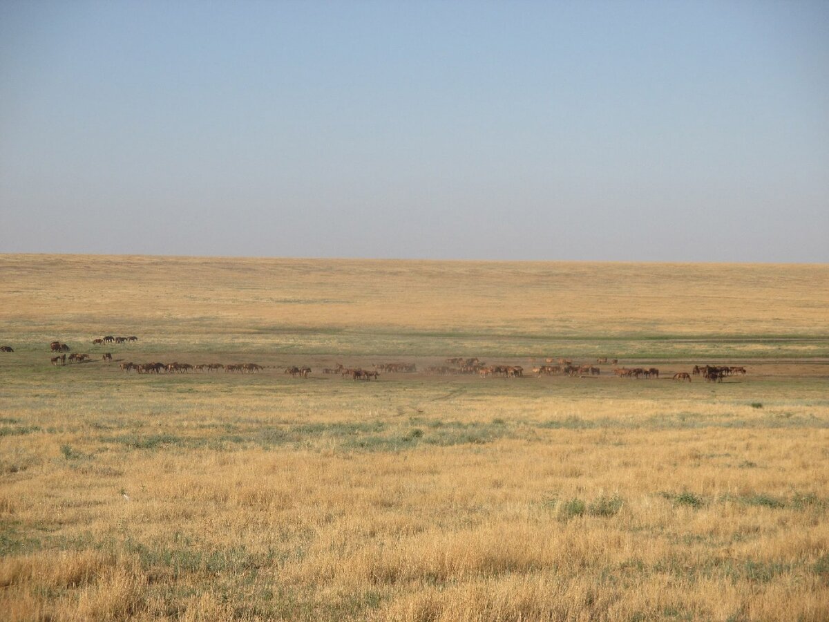 После отдыха мы пошли искать нашу группу на водопой, но не нашли. Отыскав в бинокль Наталью Николаевну, я получила подсказку знаками, в какую сторону ушли семейства, и мы пошли туда. По дороге мы любовались тропой и различными степными растениями.