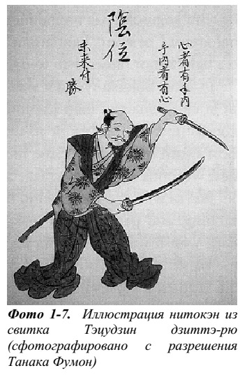 Наиболее известной школой, использующей нитокэн, является Нитэн Ити-рю, которую основал Миямото Мусаси Фудзивара-но Харунобу (для краткости Миямото Мусаси Харунобу), выдающийся фехтовальщик и автор Горин-но сё (Книга Пяти колец). Но на Западе, как и в Японии, малоизвестно, что Миямото Мусаси Харунобу в действительности не создавал стиль ведения боя с помощью нито, поскольку оно было основано на нитокэн и дзиттэдзюцу двух старых школ, которые он изучал. Например, известная техника дзюдзи-домэ (скрещенный блок), используемая Миямото Мусаси Хирунобу, была получена из принципов используемых в дзиттэдзюцу. Для полной ясности, в настоящем разделе будут рассмотрены корни Нитэн Ити-рю Миямото Мусаси Харунобу, а также будут рассмотрены дзюттэ и дзиттэдзюцу в этой главе.