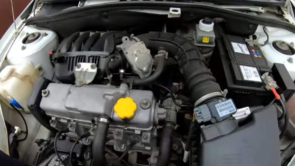 Давно не заглядывал под капот своей Гранты. Сегодня решил заглянуть, проверить все основные узлы. Честно говоря, мне немного стыдно сегодня об этом говорить. Надо учитывать, что машине уже 10 лет. Пробег более 250 тысяч км. Хочу сегодня пройти по жидкостям, посмотреть, что где и как. Проверить ремень ГРМ с роликом. Начать хочу с бачка омывателя. А точнее, с антифриза. Посмотрите, какого он стал цвета. Он не был таким. Совсем недавно он стал менять свой цвет. Это от того, что где-то в двигателе потихоньку начинает замешиваться в антифриз. Его уровень постепенно уменьшается. Вроде все сухо, кроме одного места. Это очень неприятное место. Помню, у меня на «семерке» было такое, и вот уже здесь. Заглядываем под коврик и что видим? Всем знакомое пятно. Если пальцем потыкать, появятся пузыри. На коврике видна пена. Радиатор печки где-то подтекает. Пару лет назад я его менял, поставил новый. Очень трудно было его менять. Я там подпилил патрубки, поставил шланги от Газели. Всего два года продер