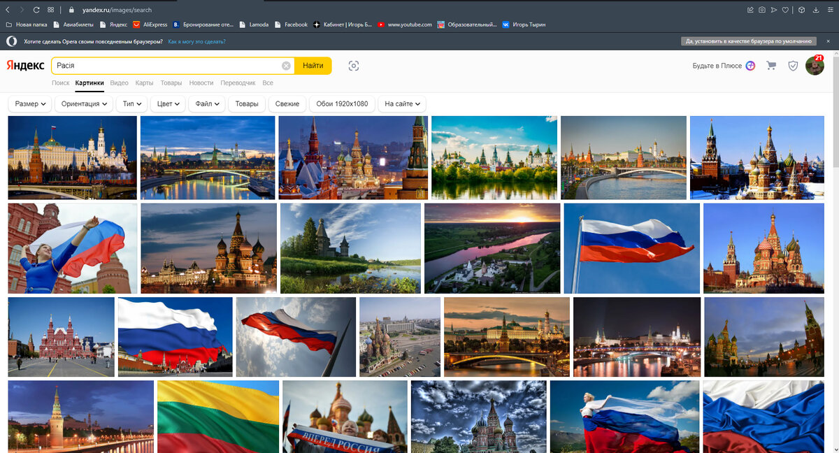 Начнём с наших западных друзей - Беларусь: Ну, ничего особенного, Кремль, Красная площадь, триколор... Друзья так друзья, Китай: Тут веселей - много матрёшек! Ещё они заботятся о целостности наших границ, рас столько карт РФ. Резко переходим на арабский! Походу мы очень религиозные для них, раз столько фотографий Правительского собора. В остальном это просто Кремль и флаг. У англичан Россия ассоциируется так: Всё тоже, только появляется река Москва. Ну и самое интересное: Украина Ну тут нет того что я ожидал, а следующая страна меня удивила больше всего. Польша: Мда... когда я собирал данные фотографии, я этого не ожидал. Что странно, я думал это будет на других картинках, но даже у самих Украинцев не было такого.
