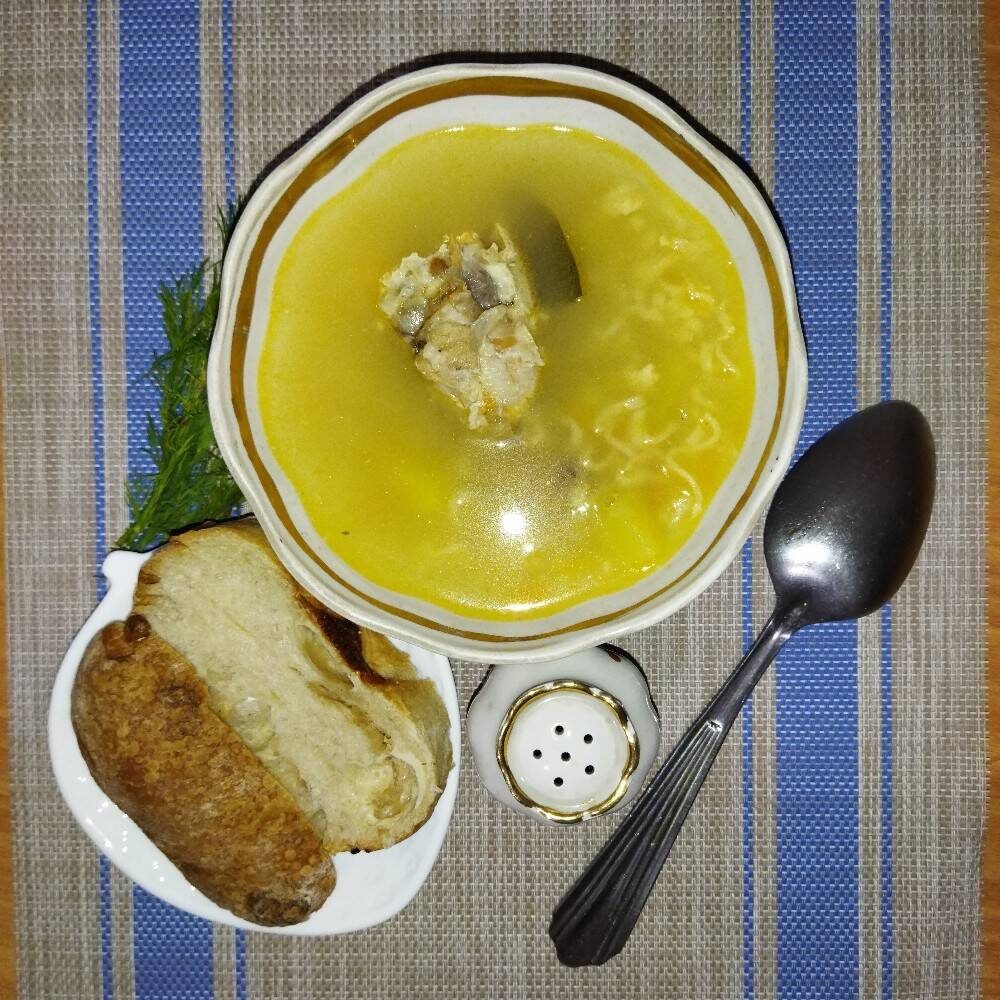 #изтогочтобыло #идея Ингредиенты: Мясо на косточке куриное, Вода, средних Картофеля, быстро Лапши, от средней Моркови, небольшая Луковица, Соль, Специи Способ приготовления: Приготовить ингредиенты. Мясо на косточке сполоснуть холодной водой.Картофель, морковь помыть от грязи, очистить от кожуры. Лук очистить, ополоснуть холодной водой, обсушить вискозной салфеткой. Морковь натереть на крупной тёрке, лук нарезать небольшими кубиками. Картофель нарезать средними кубиками. Лапшу раскрошить. Предварительно мясо положить в кастрюлю, залить холодной водой, поставить варить. Готовый бульон процедить через металлическое сито в кастрюлю, туда же положить мясо. Добавить нарезанный картофель, варить под крышкой 10 минут, добавить лук, морковь, лапшу, соль, специи, варить ещё 10 минут. Готовой суп-лапше дать постоять минут 10. Разлить по порционным тарелкам, подавать к столу горячим с кусочками мяса. Приятного Вам аппетита🌺!.