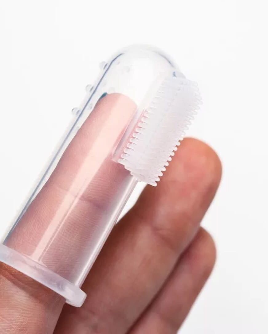 Чем чистить первый зуб? - Подойдет марлевый тампон, намотанный на палец мамы. Смочить его можно кипячёной водой. Или специально придуманные для этого напальчники (листайте карусель)