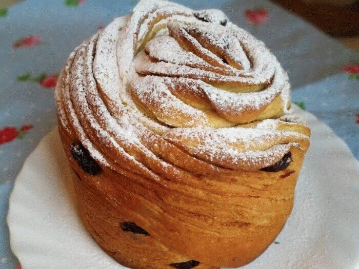 Приближается праздник светлой Пасхи! Главное блюдо этого дня - пасхальный кулич. Именно поэтому я хочу поделиться с вами рецептом невероятно вкусного пасхального кулича "Краффин"! Для приготовления нам потребуется: Для теста: Для прослойки: Для украшения: Перейдём к готовке: Шаг 1 В теплое молоко ( t ~35-40°) добавляем свежие дрожжи, половину ст. л. сахара, 1 ст. л. муки. Перемешиваем и отставляем для активации дрожжей. Шаг 2 В миску разбиваем 1 целое яйцо и добавляем 2 желтка,туда же добавляем соль, сахар, ванильный сахар. Перемешиваем и взбиваем миксером до пышности и растворения сахара. Шаг 3 За это время дрожжи уже начали работать, поэтому добавляем их ко взбитым яйцам. Шаг 4 Вливаем холодное растопленное сливочное масло. Немного перемешиваем. Шаг 5 Всыпаем хорошо просеянную муку. Муку сразу всю лучше не добавлять, т.к. она разная и её может понадобиться немного больше или немного меньше. Замешиваем тесто. Шаг 6 Выкладываем тесто на стол. Сначала оно будет немного липкое, но через