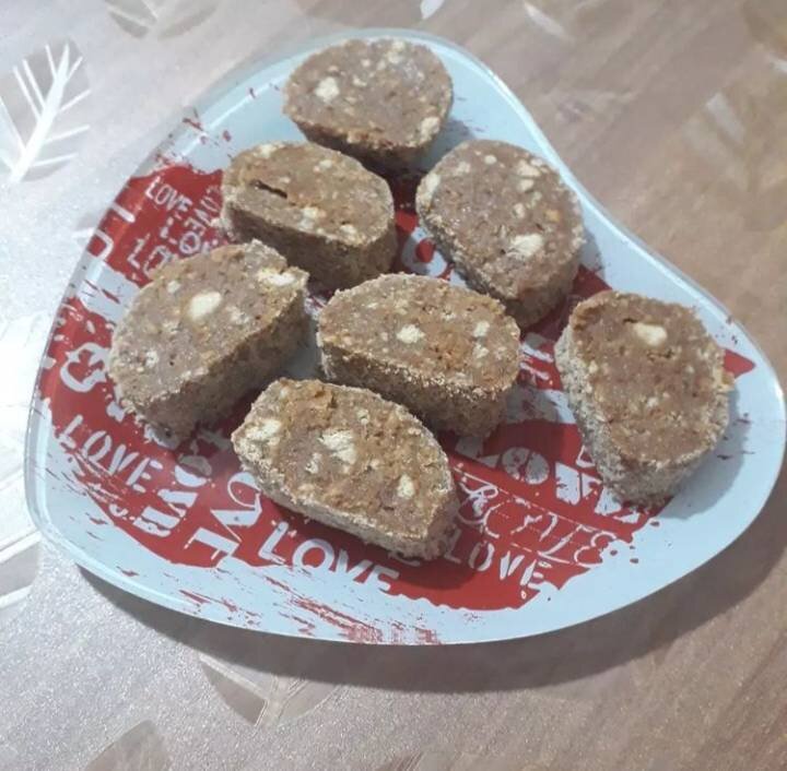 Очень легкий и быстрый в приготовлении десерт.Такой десерт можно приготовить вместе с ребёнком. Ингредиенты: вареной сгущенки, печенья (молочное или сливочное) и 2-3 печеньки на посыпку, сливочного масла Способ приготовления: Покрошить мелко печенье. Растопить сливочное масло. Хорошо вымешать с печеньем сгущенку и масло. Для посыпки измельчите блендером 2-3 печенья в однородную крошку. Расстелите плёнку на столе и посыпьте на неё посыпку. Сформируйте из сладкой массы колбаску. Хорошо обваляйте её в посыпке и заверните в пленку. Края пленки закрепите хомутиками. Придайте окончательную форму вашей колбаске и отправьте в холодильник на 20-25 минут. Приятного аппетита!