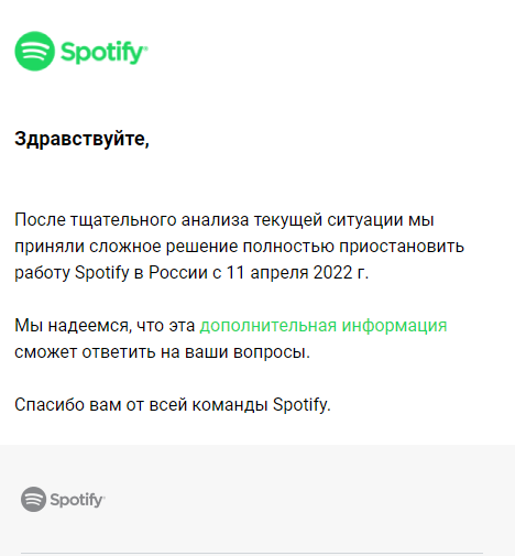 11 апреля Spotify ушел из РФ и теперь музыку слушать нельзя как в приложении так и на сайте. Итак, ближе к делу. Чтобы продолжить наслаждаться музыкой в Spotify и после его ухода из России, нужно проделать следующие действия: 1. Включить впн с любой другой страной, советую использовать urbanVPN так как с ним 100% все получится. 2. Зайти на сайт spotify и войти в свой аккаунт. 3. В настройках аккаунта изменить регион на тот который вы выбрали в VPN и сохранить. После этого вы можете отключить VPN и продолжить пользоваться Spotify. На этом данная статья подходит к концу. Благодарю за ваше внимание!