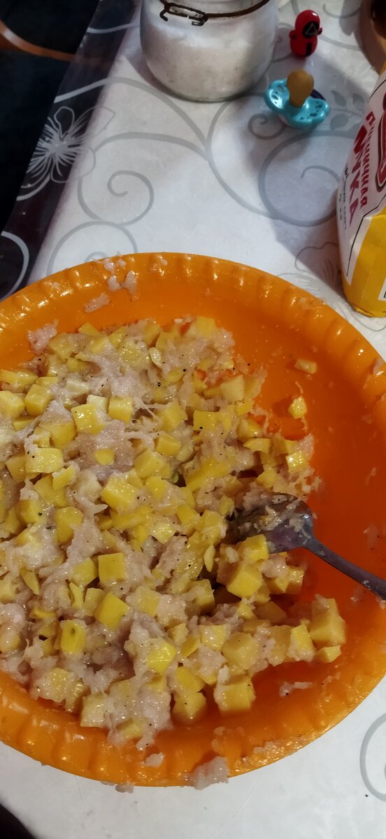 Привет всём мои дорогие. Сегодня мы с мужем решили на ужин приготовить манты и попробовали впервые необычный вариант, а какой именно я вам расскажу подробнее. Для теста: 1 яйцо Стакан воды Немного соли Немного под.масла Для начинки: Куриная грудка Картошка Репчатый лук чем больше, тем вкуснее и сочнее Соль Кумин(зира) Под.масло Итак приступаем к готовке. Картофель очистить и нарезать кубиками,( я сделала с найсер дайсером очень быстро). Куриную грудку нарезать и измельчаю немного в блендере туда сразу же отправляю репчатый лук средних 2-3 шт, получается фарш. (Это и есть секрет, так как из магазинного фарша у меня и у мужа изжога). Всё это выкладываю в миску или в кастрюлю,приправляю добавляю немного соли и немного зиры его протираю между ладонями и кладу , затем немного добавляю масла пю подсолнечного и всё перемешиваю. Начинка готова, оставляю в стороне. Приступаю к приготовлению тесту. Для этого смешиваю яйцо, соль, масло подсолнечное, вода и мука, замешиваю тесто. Полученное т