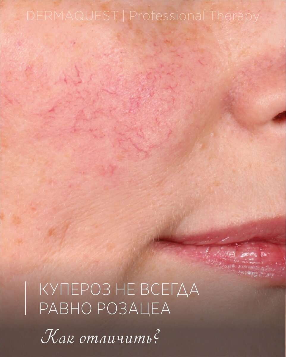 Купероз не всегда равно Розацеа! ✔️Приводим 4 критерия для выявления причины появления купероза, а именно: Розацеа или солнце? #Купероз — косметический дефект: тонкая сеточка из расширенных сосудов на лице. Является проявлением двух различных патологий кожи: #Розацеа и Фотостарение. 1️⃣ ЛОКАЛИЗАЦИЯ ▫️#Фотостарение: #Купероз появляется в зонах, подверженных многократному избыточному облучению ультрафиолетом. Возникает у любителей позагорать. ▫️При #Розацеа: купероз локализуется центрофациально - боковые поверхности носа и прилежащая к ним зона щёк. 2️⃣ СВЯЗЬ С ПОКРАСНЕНИЕМ И ПРИЛИВАМИ ▫️#Сосудистаясеть появляется на визуально здоровой коже, без предварительного этапа приливов и стойкого покраснения кожи. ▫️При розацеа: клиенты отмечают длительный предшествующий период развития болезни: #приливы, #стойкоепокраснение, #жжение и #дискомфорт. Только следующим этапом появляется купероз. 3️⃣ ▫️При куперозе на фоне фотостарения связь с наследственностью отсутствует. ▫️При Розацеа - част