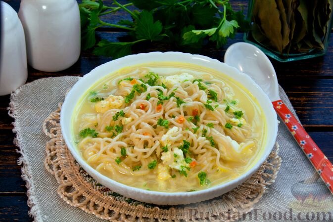 Суп из лапши быстрого приготовления с яйцом и сыром. Тыквенный крем-суп с куриной печенью. Прозрачный куриный бульон. Щи из свежей капусты с пшеном и свининой. Сырный суп с фаршем, капустой и грибами. Картофельный суп-пюре с беконом и черемшой. Рассольник с рыбой и рисом. Тыквенный крем-суп с куриной печенью. Чтобы сделать яркий и нежный суп-пюре из тыквы интереснее, можно дополнить его жареной куриной печенью. Кусочки печени обжариваются с луком и чесноком и идеально дополняют блюдо. Получается очень вкусно и сытно. Прозрачный куриный бульон. Сварить его несложно, нужно только знать несколько секретов. И в результате у вас будет золотистый, светлый и чистый бульон. Его можно использовать как основу для первых блюд, заморозить или пить просто так. Щи из свежей капусты с пшеном и свининой. Благодаря наваристому мясному бульону и обжариванию овощей на вытопленном сале щи получаются насыщенными и ароматными. Простое, можно сказать деревенское первое блюдо для сытного полноценного обеда.