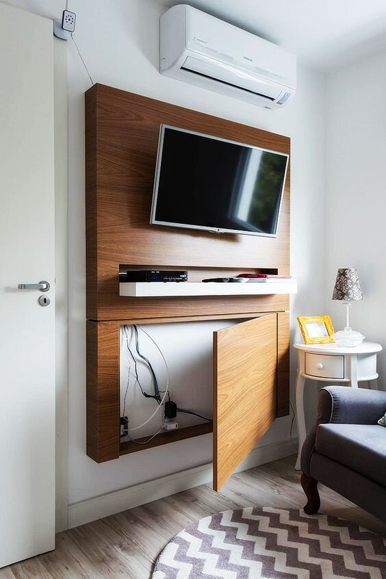 Во время ремонта можно перенести розетки, предусмотреть коробы для кабелей и даже поменять батареи. Но что делать, если ремонт в ближайшее время не планируется, а интерьер выглядит “неряшливым” из-за торчащих проводов и громоздких радиаторов? Есть несколько фишек, которые позволят решить эту проблему. Декоративное панно Если кабель длинный, можно установить на стене крючки или зажимы и с помощью них создать настоящее декоративное панно. Такой вариант подойдет для современный интерьеров и лофт-пространств. Дверца Одино из самых очевидных решений. Даже если рядом с кабелями нет другой мебели, вы можете закрепить их на стене и построить вокруг небольшую тумбу. Верхнюю часть тумбы удобно использовать в качестве полки. Ящик для зарядных устройств Чтобы смартфоны, планшеты и другие гаджеты не были разбросаны по всему дому, соберите их в одном месте. Сетевой фильтр можно закрепить в выдвижном ящике комода и заряжать все устройства там. Прячем за картиной Картина — очень полезный предмет интер