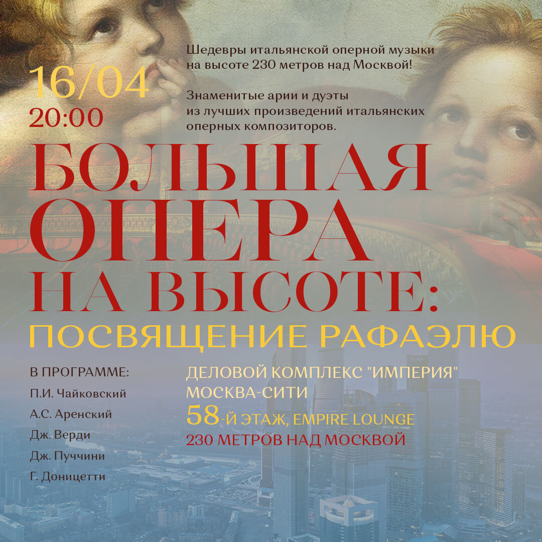 16 Апреля 2022 в 20:00 "Большая Опера на Высоте!"58-й этаж Башни "Империя" Москва-Сити - Афиша