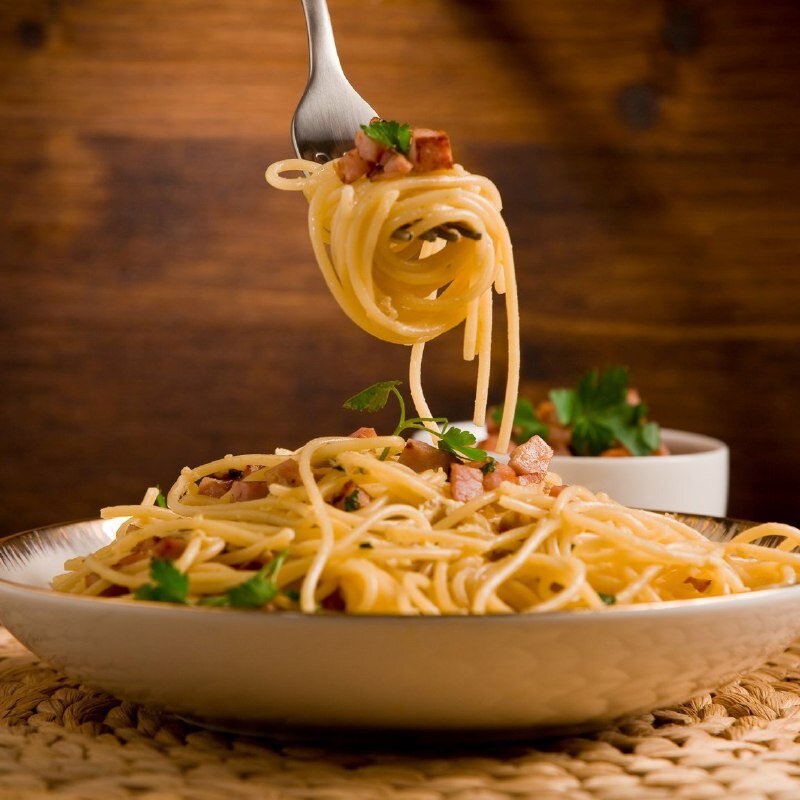 Устройте себе сегодня полезный и сытный ланч! Мы предлагаем вам рецепт пасты «Карбонара», который в изобилии содержит витамин В1 (тиамин). Он обеспечивает работу нервной системы и мышц, в частности, сердечной. Также тиамин помогает организму вырабатывать энергию из пищи и поддерживает нормальный липидный и углеводный обмен. Дефицит тиамина в организме чреват повышенной утомляемостью, тревожным сном, ухудшением аппетита, постоянным ощущением холода или жара, мышечной слабостью и одышкой. Витамин В1 содержится в следующих продуктах: семенах, орехах, ростках пшеницы, дрожжах, свинине, овсяных хлопьях, цельнозерновой пасте, ржаном хлебе, топинамбуре, ягодах облепихи, печени, курином филе, цельзерновом рисе, лососе, бобовых, яйцах. Ингредиенты (из расчёта на четырёх человек): Спагетти – 300 гр. Твёрдый овечий сыр – 50 гр. Панчетта – 50 гр. Гуанчиале – 50 гр. Яичные желтки – 5 шт. Сливочное масло – 05, чайной л. Чёрный молотый перец – 1 чайная л. Соль – 1 чайная л. Приготовление: Пан